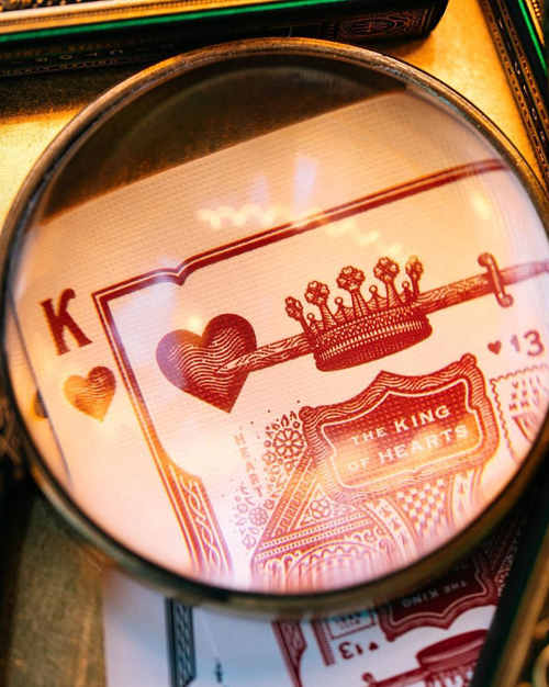 Designed to reward close inspection, the deck features subtle nods to classic card-making lore, from the ‘suicide king’ and one-eyed jacks to the recreation of each queen’s traditional flower.