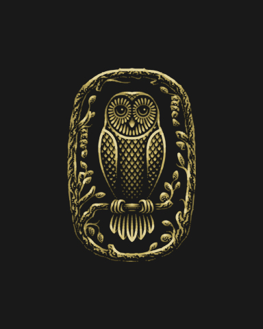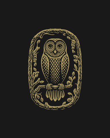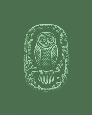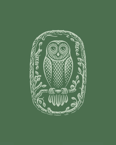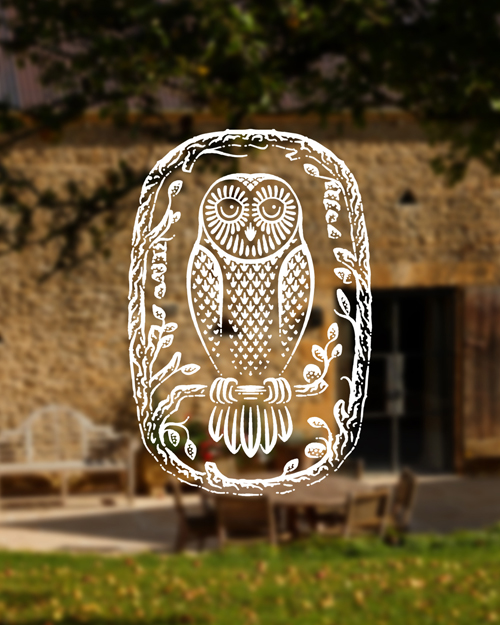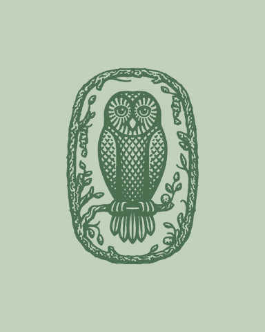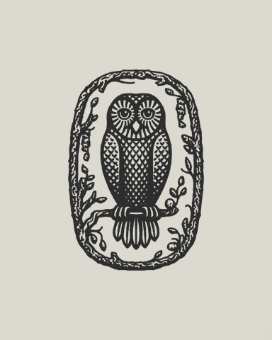 A hand-drawn owl framed by branches,a symbol of calm, stillness and quiet observation.