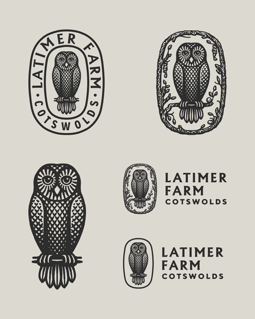 The illustrated mark is designed to feel timeless and grounded, with versions built to work across both light and dark backgrounds. Supporting typographic emblems and badges bring structure to the system, allowing it to scale across signage, print and packaging.