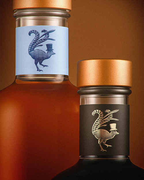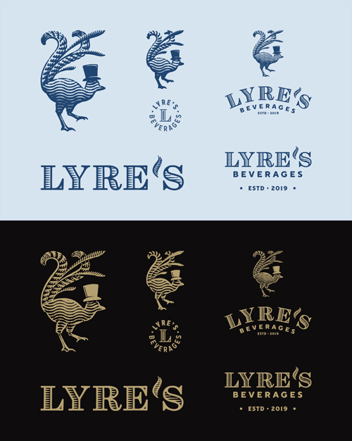 The lyrebird, known for its ability to mimic the sounds it hears, is the perfect emblem for a brand that reimagines non-alcoholic spirits. Paired with a top hat, the bird becomes a symbol of charm, craft, and confidence.