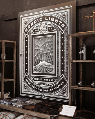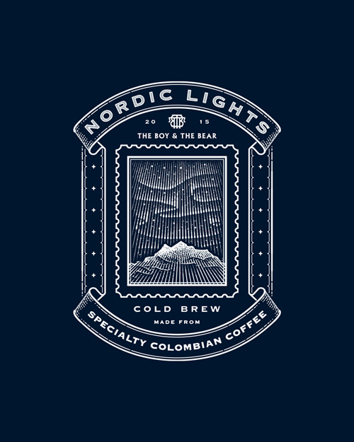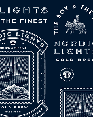 The Boy & The Bear approached me to create a label illustration for their year-round Nordic Lights Cold Brew, a specialty Colombian and Brazilian coffee blend with tasting notes of peach, almond, and dark chocolate.